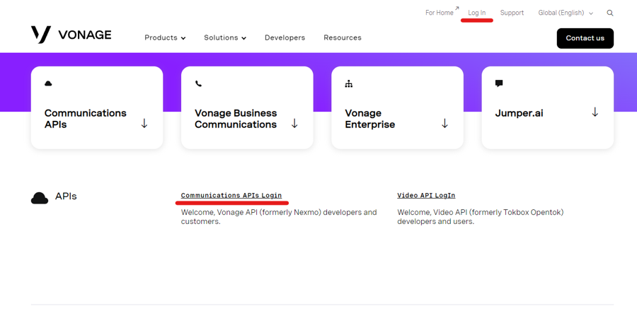 Login on this Website --> Click Communications APIs Login On Left Side Click API Settings Set API Key and API Secret 1