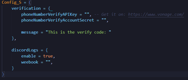 phoneNumberVerifyAPIKey = "", -- Get it on: https://www.vonage.com/